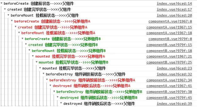 当我们被问起vue的生命周期的时候,我们自然就回答到有beforeCreate,created,mounted,updated,destroy。就是一个生命的开始和结束。这次我们探讨的是我们有兄弟组件的时候,各个组件在执行钩子函数的时候的执行顺序是怎么样的,按照之前的理解:是先执行完兄弟组件A的生命周期再执行兄弟组件B的生命周期。如果是这样的话,那么vue的执行效率是不高的。