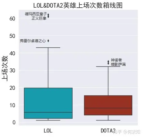 但实际情况不是这样。都是101场比赛,每场比赛都是选择10名英雄出场。DOTA2比赛一共上场了96名英雄,而LOL只有82名。另外,DOTA2除了上场英雄多之外,英雄的出场频次也更均匀,不会出现LOL那种超热门英雄(比如每两场比赛就会出现一次的:德玛西亚皇子、正义巨像)
