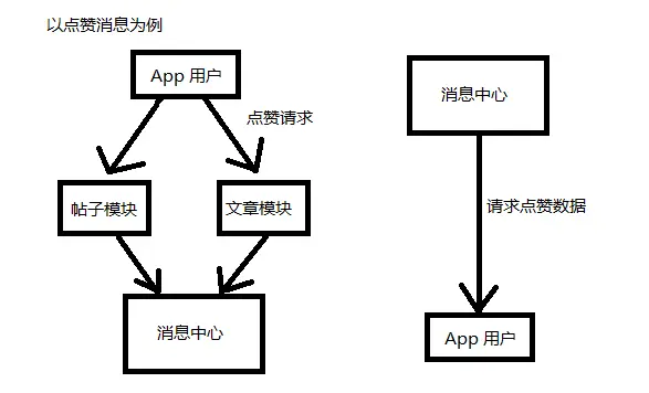 分析需求后,我们能会发现消息中心的角色如下图(以点赞消息为例):