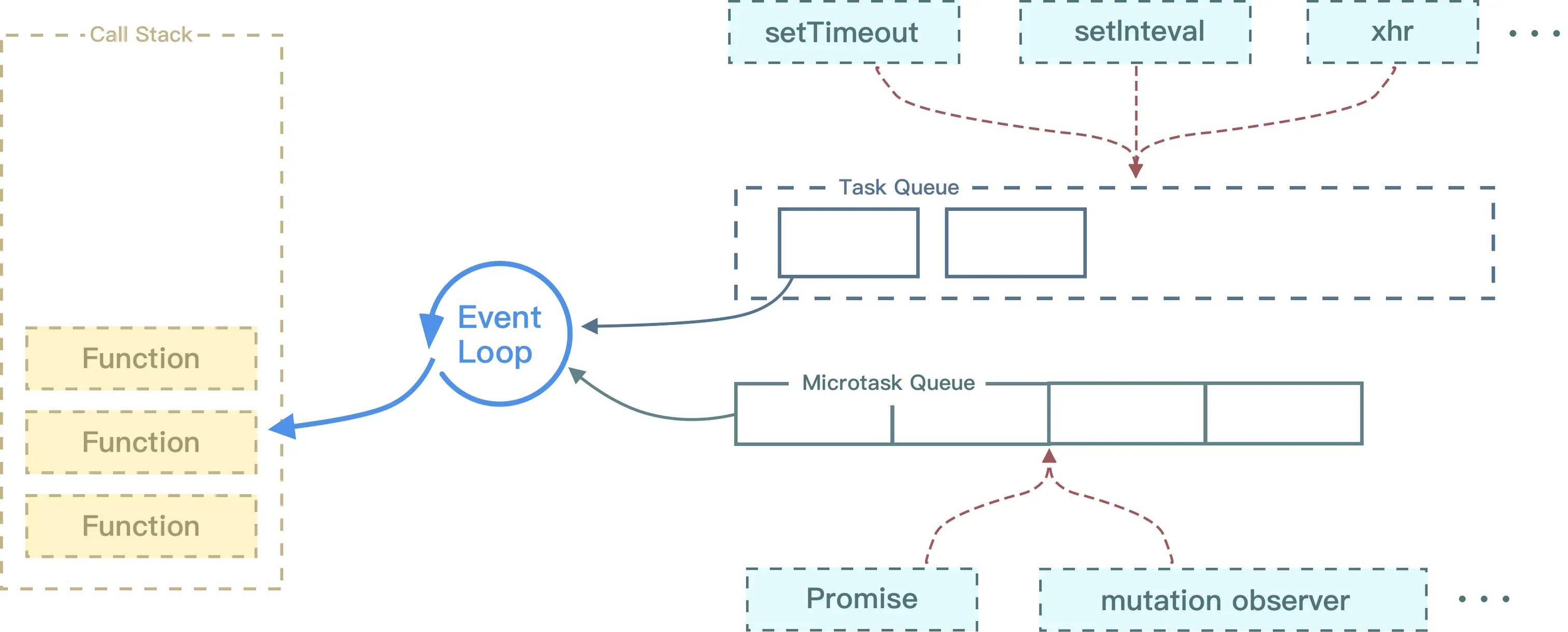 - 微任务包括 process.nextTick ,promise ,MutationObserver,其中 process.nextTick 为 Node 独有。