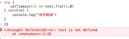 首先我们要明白一点,前端如何捕获错误,在代码中我们可以经常使用 try...catch 来捕获错误,但是 try...catch 无法捕获语法错误和异步错误,如下