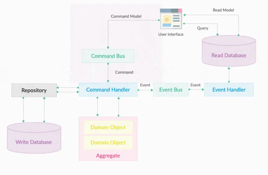 根据上图,创建命令,将命令传递给命令总线然后创建事件并将事件放在事件总线上还不是CQRS。我们必须记住改变写入存储库的状态并从读取数据库中读取当前状态,这才是CQRS模式的关键点。