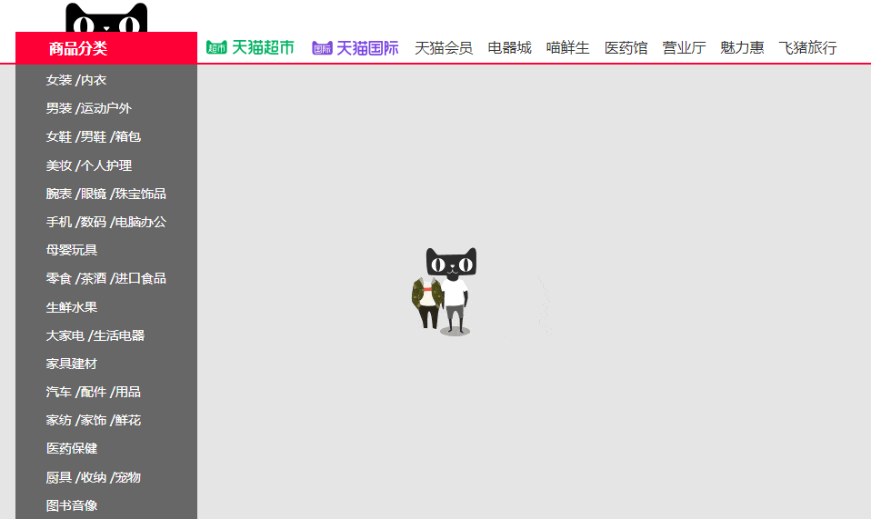 同时天猫的一个小细节貌似更加贴心。天猫中间的banner区域,放了一个天猫模特换装的GIF图片。专门用来缓冲banner区域的图片预加载时空白感,而京东的banner部分却没有这个小细节。