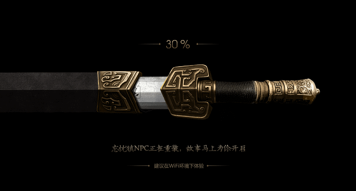 基础版的循环动画,这样是不错解决方案。 - 当预加载的资源很大,以当前环境的平均网速的情况下加载时长超过3S以上的,建议像《忘忧镇》一样采用