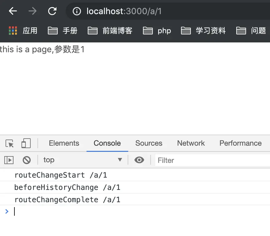 如果说我们只想绑定routeChangeStart事件,则可以这样写,当触发routeChangeStart时候,输出一个内容。
