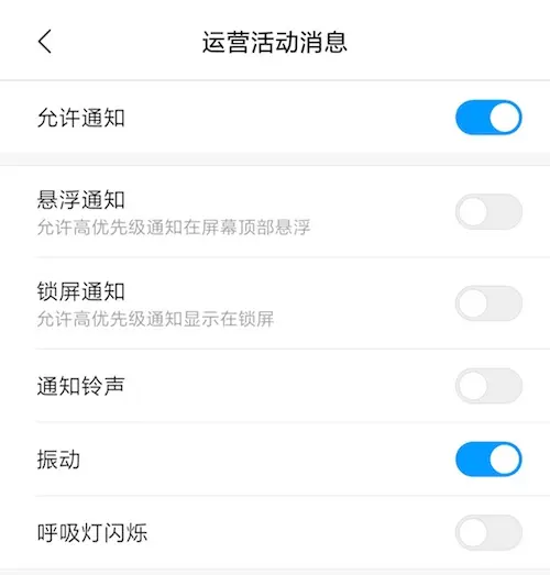 这样用户就可以根据自己的需求屏蔽掉不想要的消息通知了:
