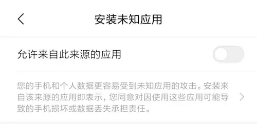 在 Android 8.0 之前的系统,用户若从官方应用商店之外的来源安装应用时,首先需要在系统设置中打开“允许安装来自未知来源的应用”选项:
