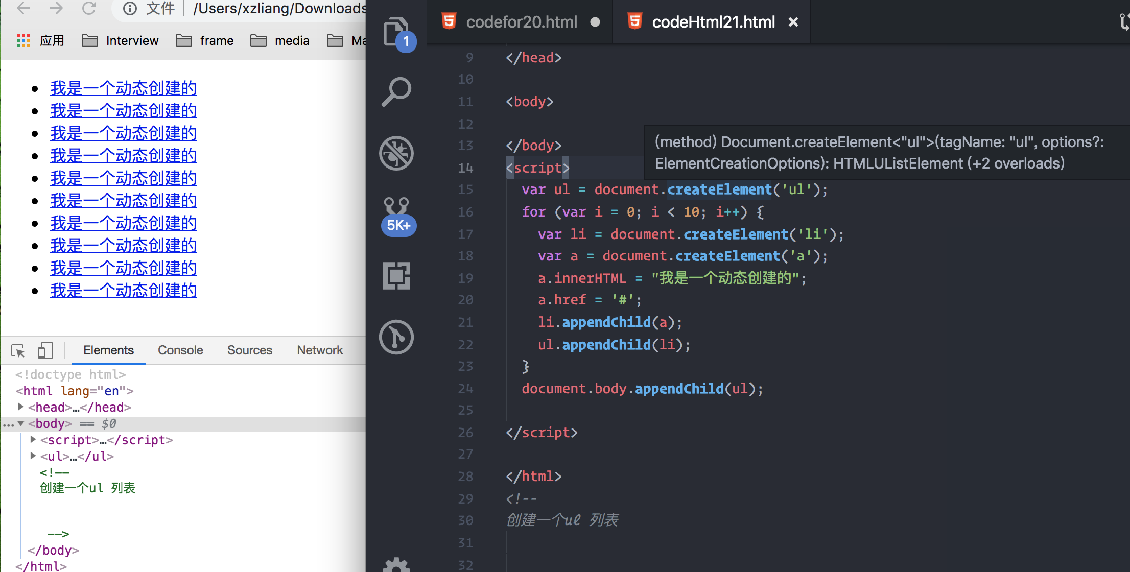 使用js 动态创建 ul li 标签