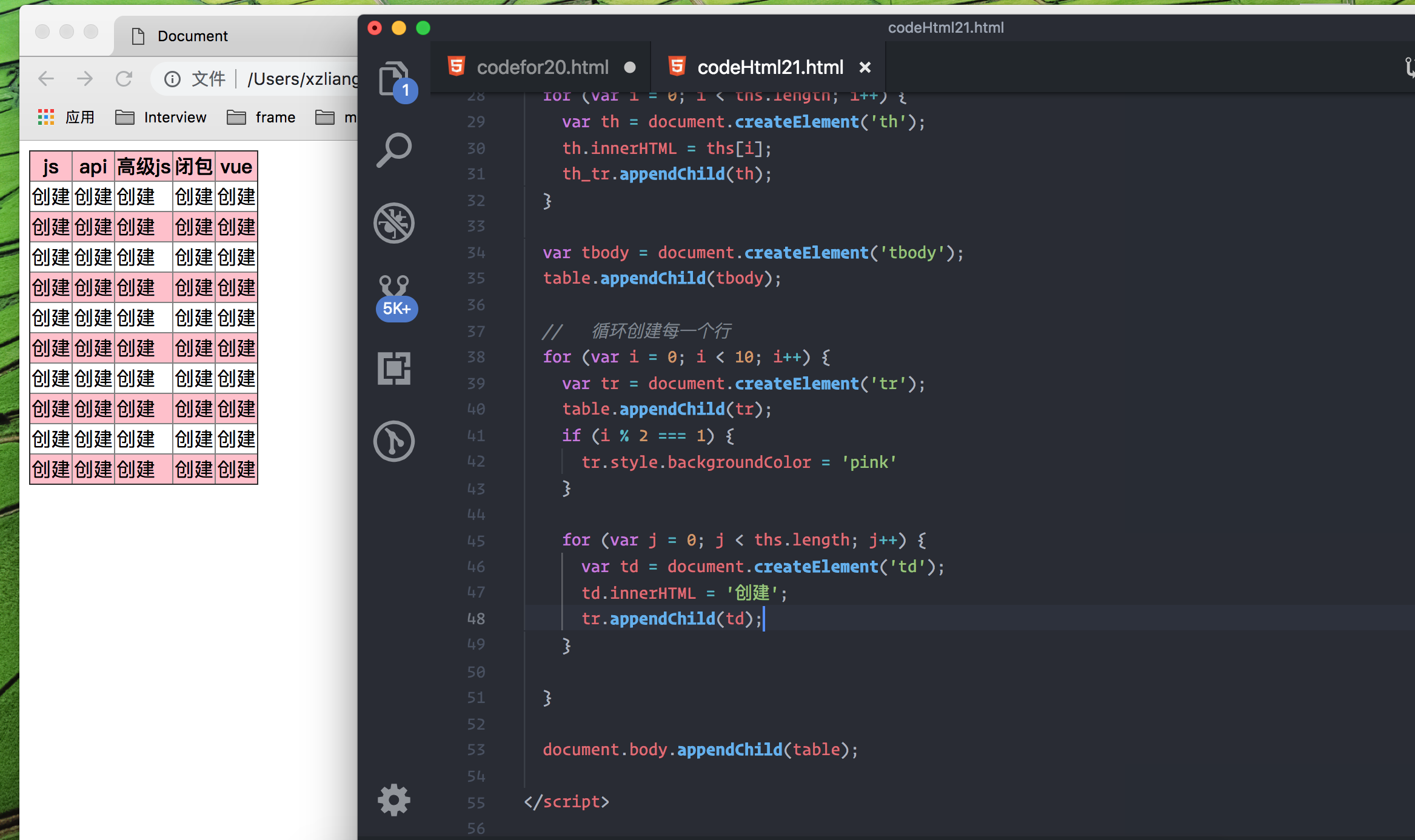 使用 js 创建 table 标签