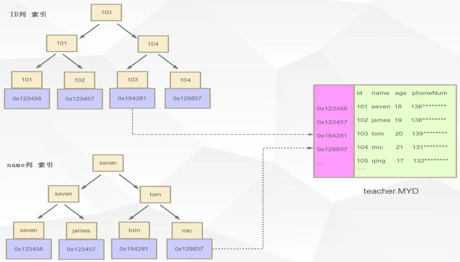 Mysql B+Tree索引体现形式