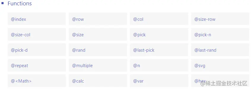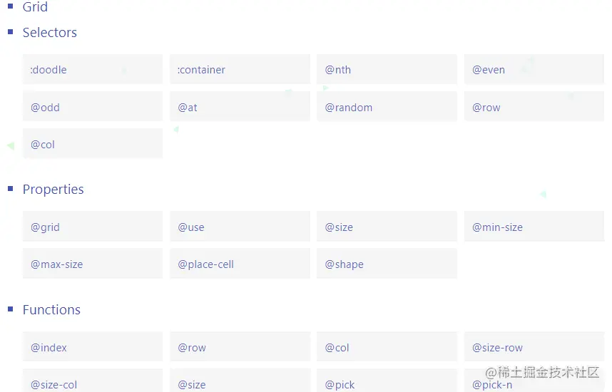 除了上面一些简单的属性之外,css-doodle官网还介绍了很多属性: