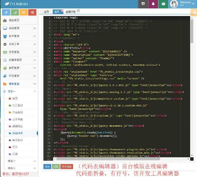 (在线编辑前台模版,随改随用,保留编辑记录,任意还原历史模版)