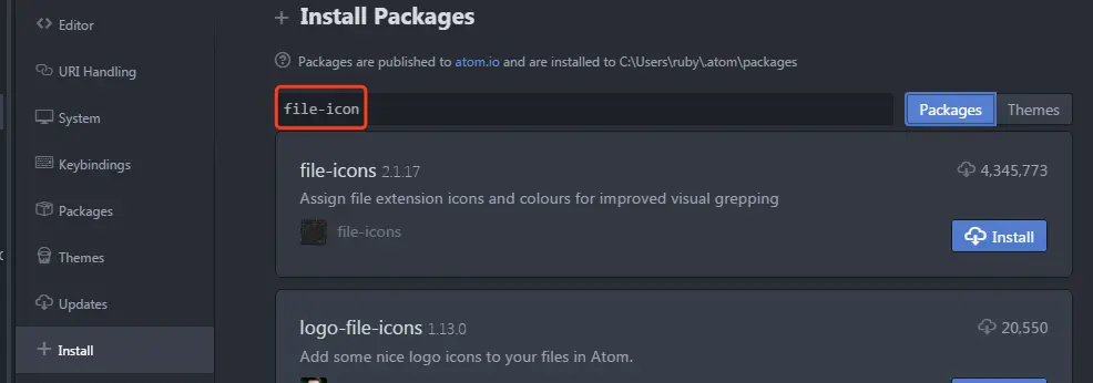 3.安装file-icon插件,它提针对不同后缀的文件,提供了大量的icon显示。