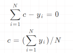 损失函数为平方损失,因为平方损失函数是一个凸函数,直接求导,倒数等于零,得到 c。