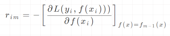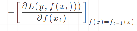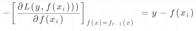 第 t 轮的第 i 个样本的损失函数的负梯度为: