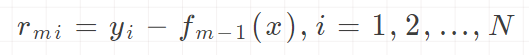 由于我们设置了迭代次数:n_trees=5,这里的 M=5。 计算负梯度,根据上文损失函数为平方损失时,负梯度就是残差残差,再直白一点就是 y 与上一轮得到的学习器 的差值