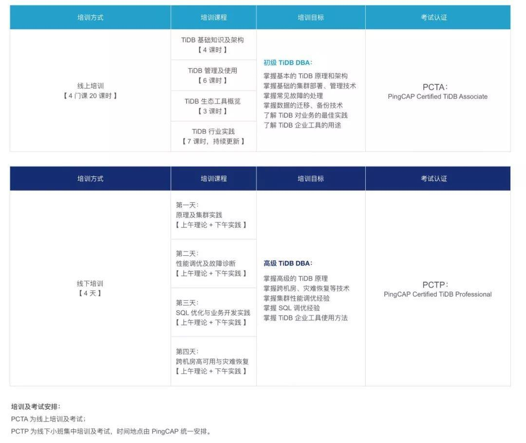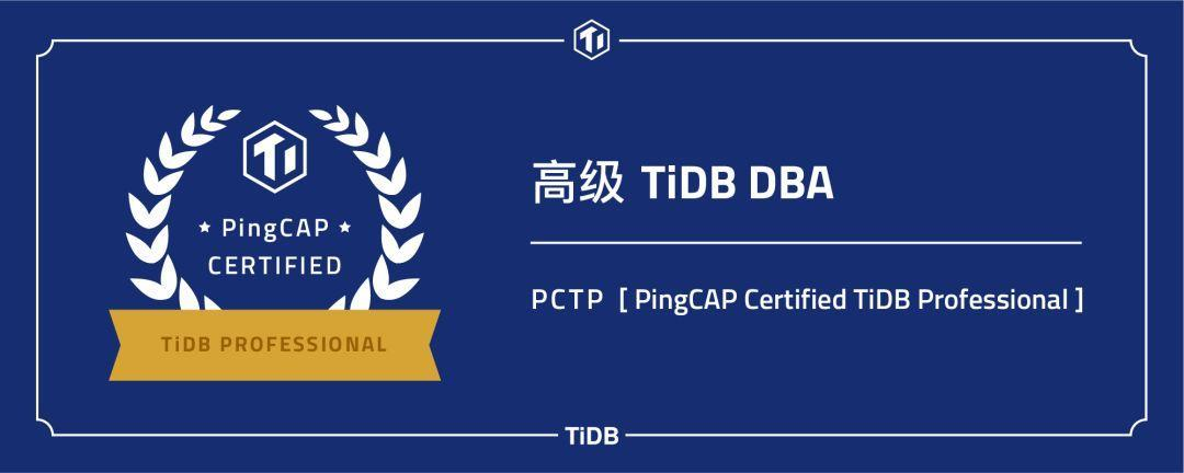 PingCAP 还将为通过考核认证的学员颁发「初级/高级 TiDB DBA」官方认证证书。
