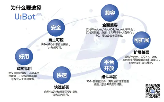 UiBot正是企业所要找寻的数字员工。它能够面向多类需求,适应不同场景,同时部署快速、操作简便,有效的帮助企业优化流程,降本提效。UiBot开发团队以“十八年磨一剑”的专注,依托人工智能、先进的互联网技术和深厚的RPA合作经验,致力为合作伙伴提供简单、高效、全面的RPA解决方案。