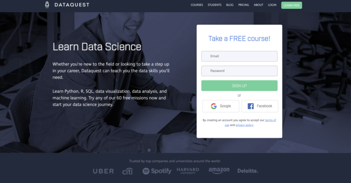 Dataquest 是以文字教程为主的网站,也是边看边学,与 DataCamp 很相似,有兴趣的朋友可以探索一下。