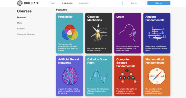 Brilliant.org 是我偶然间从 Instagram 推荐的广告上发现的网站,网站制作精良,多是数学与科学的主体。网站试图以最简单的方法出传达科学知识,绝对是不可多得的好网站。同时也有人工智能与机器学习的主体,但应该更偏重理论,有兴趣的朋友可以了解一下。同时这个网站还有同名 app:Brilliant。