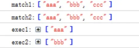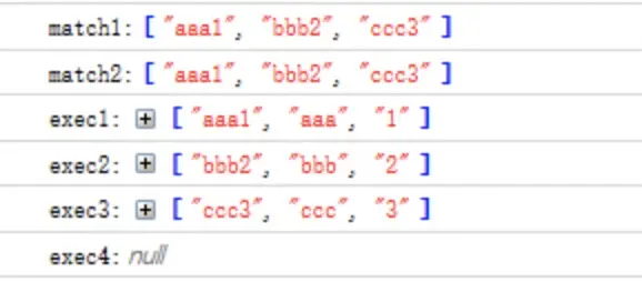全局匹配分组时,match和exec返回结果不同。match会返回所有匹配到的结果;而exec会返回本次匹配到的结果,若表达式中出现分组,则会依次返回本次匹配的全部分组: