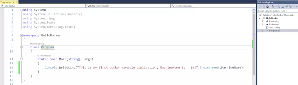 打开Program.cs,在main函数中写入一行代码,在控制台输出一条消息,如下图Image-2所示: