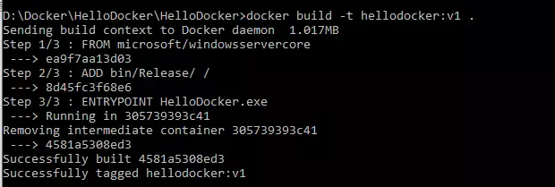 docker build -t hellodocker:v1 . 如下图Image-4所示: