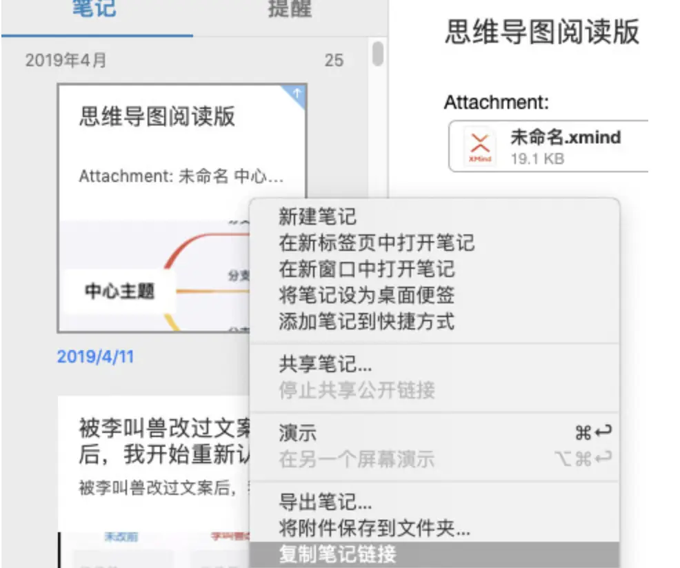 - 复制印象笔记里的工作笔记内部链接,粘贴到 XMind: ZEN 中的特定主题,完成链接;