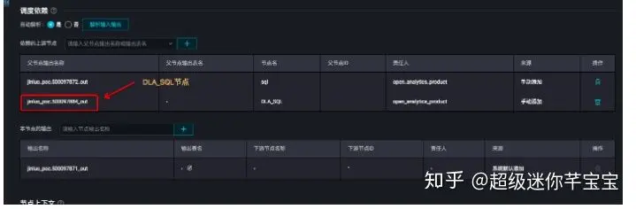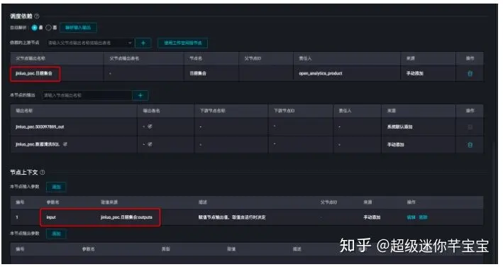 在调度配置页面设置依赖关系和节点上下文。上游节点设置为赋值节点“日期集合”,本节点的输入为赋值节点的输出。