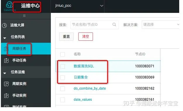 进入运维中心页面,在周期任务的列表里面可以看到我们刚刚提交的两个作业。