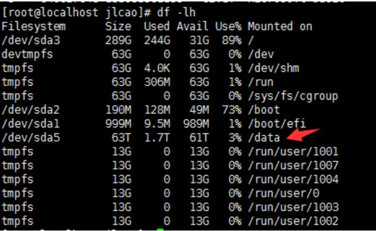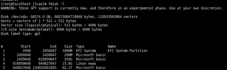 # fdisk -l(查看linux下挂载分区情况,找到移动硬盘分区)