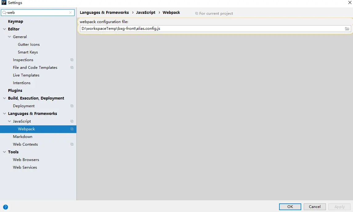 别名是webpack处理的,但是cli3中没有webpack配置文件,Intellij中要实现跳转需要新建一个webpack配置文件(只用来告诉Intellij如何跳转,无实际作用)