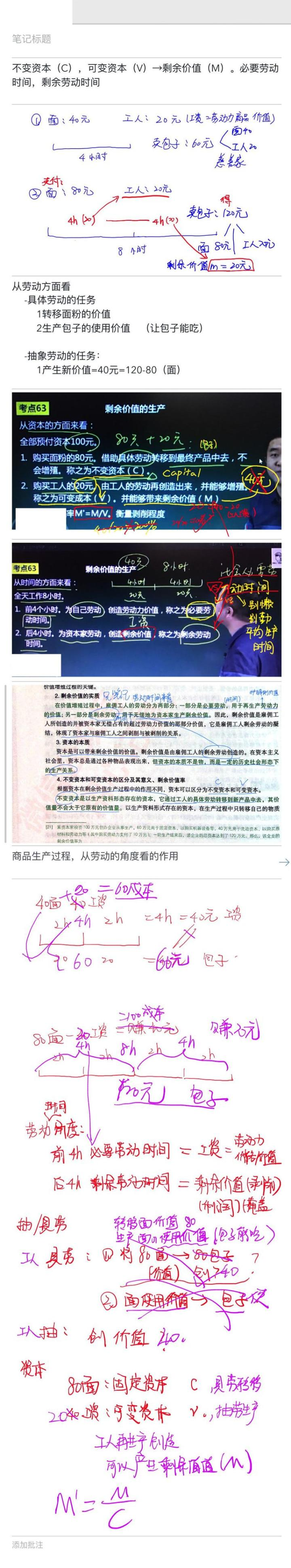 可是有时候我们需要整段的书上的文字,同时也需要对一个知识点进行详细的笔记,比如在讲剩余价值的时候,涛涛讲了很长时间的做包子的例子 (很生动,很喜欢,听完很饿),讲了很多内容,但是树上的笔记记不下该怎么办呢!Don’t worry,土土有好办法!