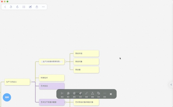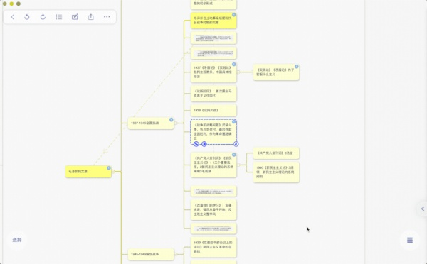 当我们做成了一张张卡片之后,所有的知识点还是分散在书中,我们打开思维导图功能,就能将这一张张卡片构建出一个完美的思维导图框架!