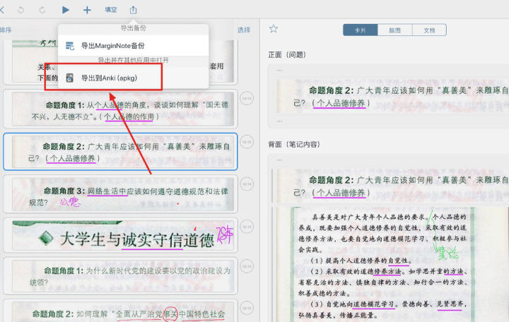 因为截止目前,MarginNote 3 的复习功能还未完善,所以我们选择导出 Anki 来进行背诵复习。