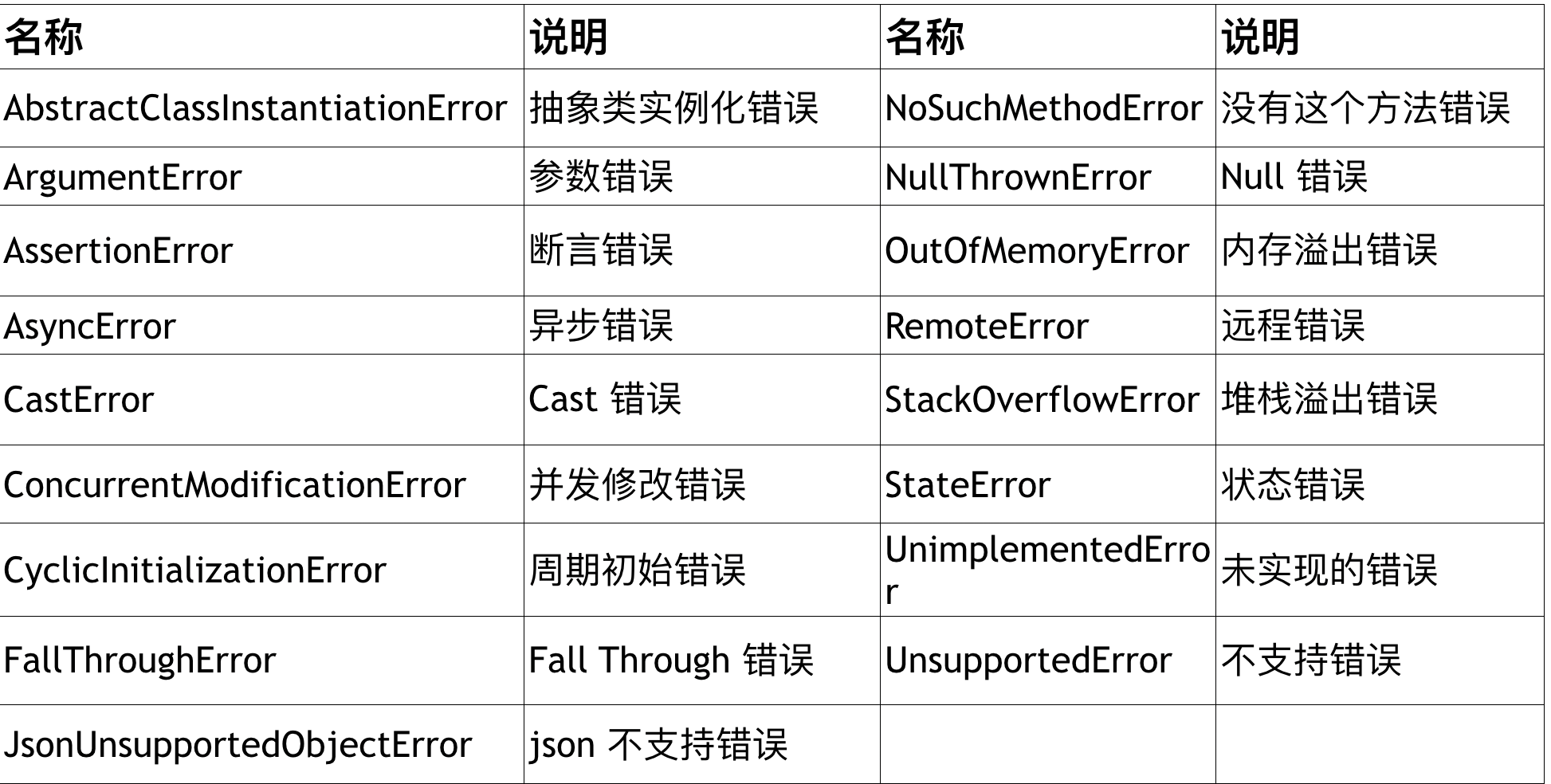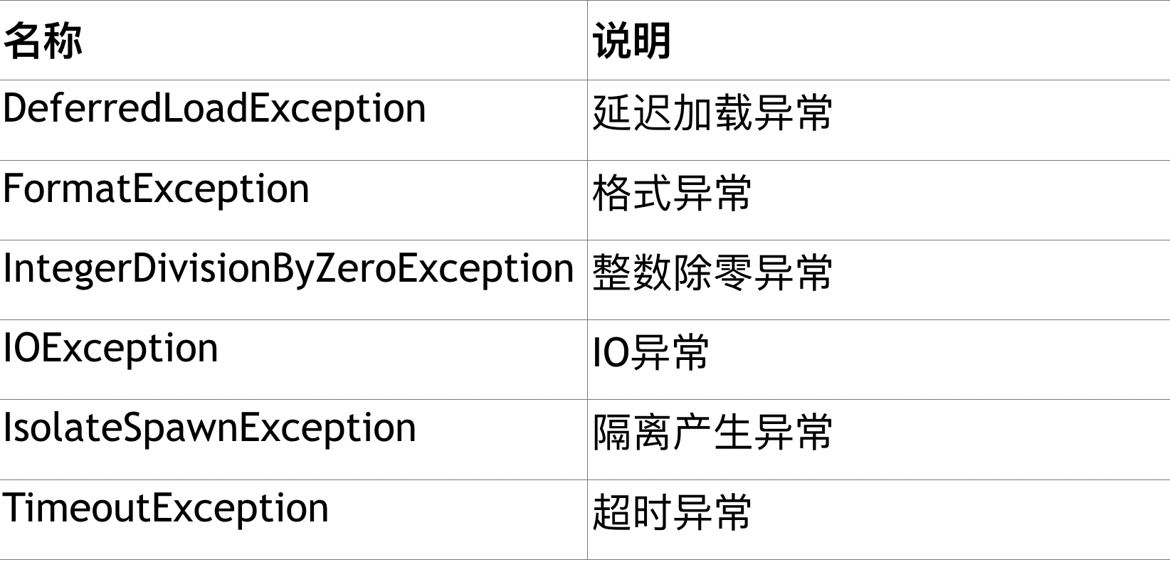 Dart提供的异常类型: