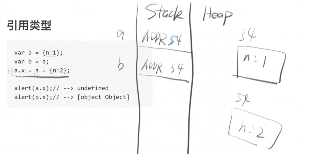 因为浏览器是从左向右看,所以a.x = a = {n:2};这句话先看a为34,然后从右向左开始赋值