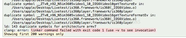 将打包好的framework和第三方静态库引入项目,运行,产生两个静态库文件类名重复的问题。如下: