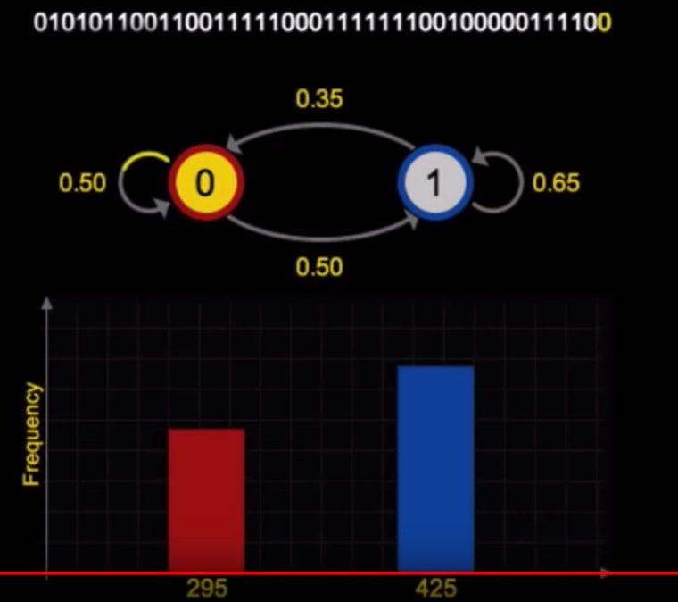此时俄罗斯数学家马尔可夫(Andrey Markov)站出来说:大数定律对相互关联的变量同样试用!他给出了下面这个实验: