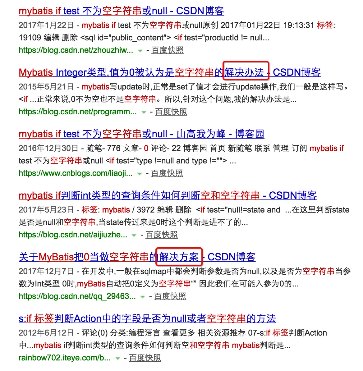 这里我并不想骗大家,遇到这种问题,坦白说第一反应当然不是看源码啦,当然是打开浏览器搜索一下.我们搜索的方向主要有两个,一个是mybatis if标签的判断原理,一个是为什么mybatis if标签空字符串和0是相等的.结果发现,并没有找到我们要想的答案(大家可以自行搜索一下).