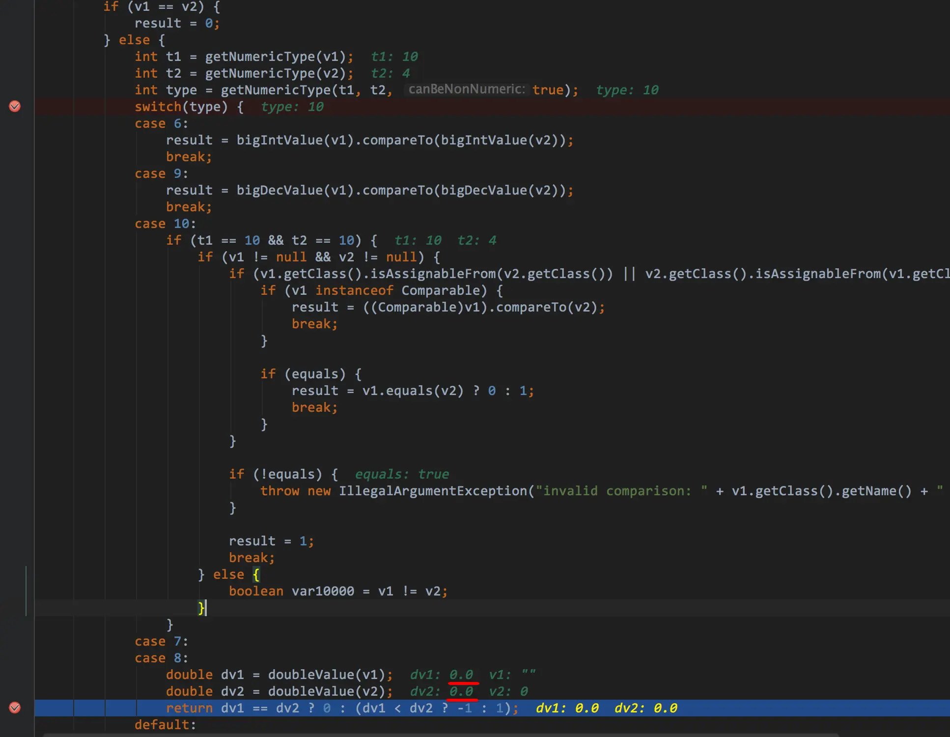 首先他会获取两个判断对象的类型,当拿一个字符串和一个数字判断的时候,因为类型不一样嘛,当mybatis发现,这个字符串是可以转换成数字的,那么就会把这个字符串转成数字,然后再和这个数字判断.