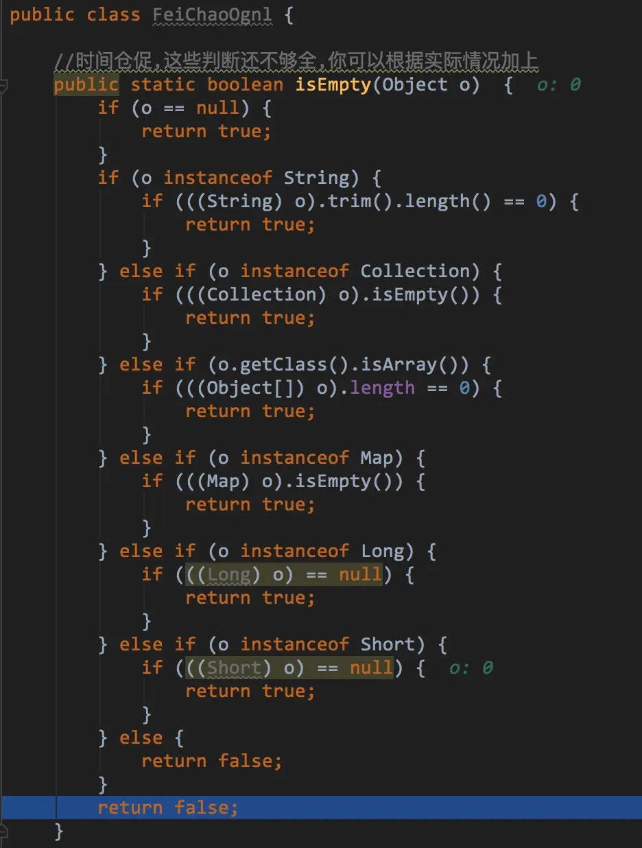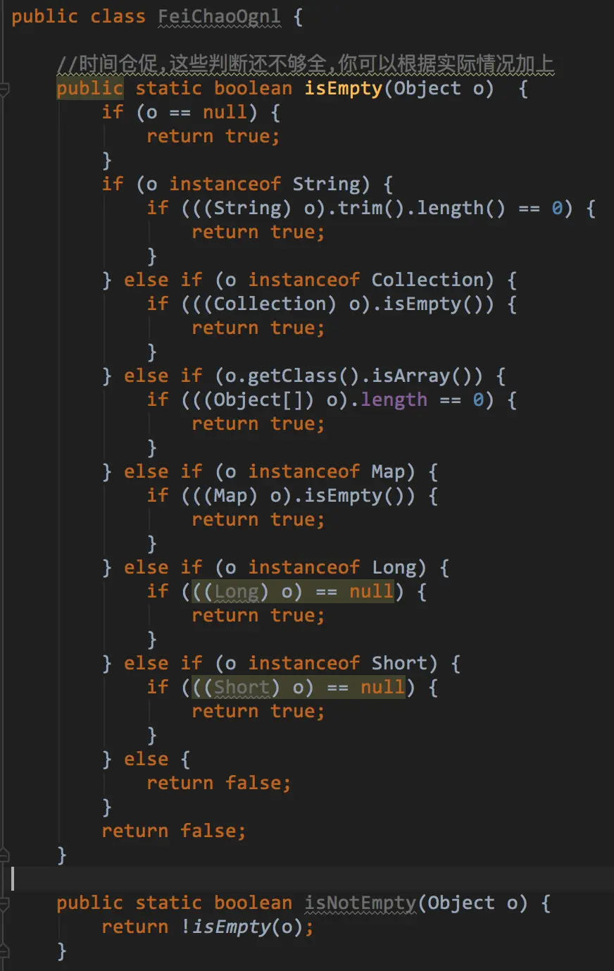 只要把FeiChaoOgnl判断方法补充完整,按照这个写法,就算是复制黏贴一把梭,出问题的风险也大大降低