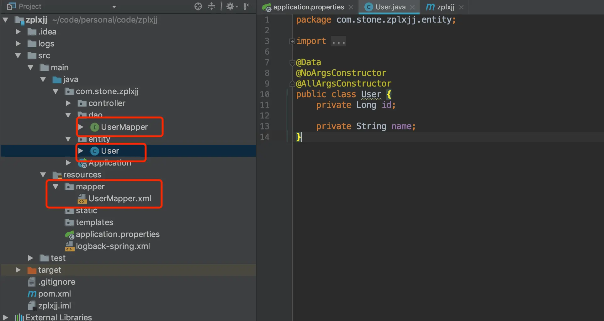第二步: 因为我使用的xml配置文件去使用mybatis,在application.properties文件加入如下配置: