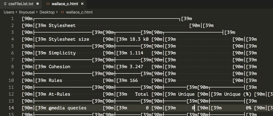 cat ~/Desktop/getCSS.css | wallace -c