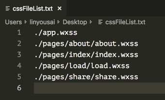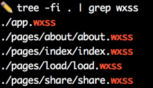 通过 tree 命令直接把当前目录下所有 wxss 文件都输出,并去掉树状结构的图形,最后输出到 cssFileList.txt 文件中。在输出到文件之前,我们可以先看一下罗列出来的内容是这样的: