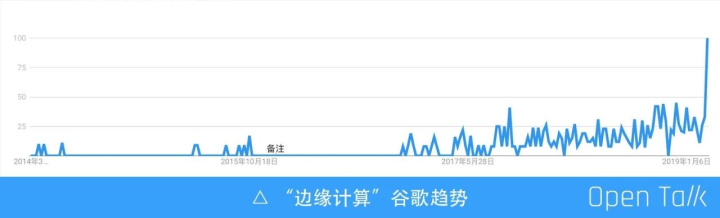 上图可以看到从 2015-2019 年,边缘计算的趋势一直往上走。关于边缘计算,有很多定义的方式,首先定义边缘节点:非数据中心的计算资源, 都是边缘节点。需要注意的是作为边缘计算平台,不仅仅由边缘计算节点组成,也包含数据中心的节点,在实际中,我们遇到了许多的边缘节点场景,比如说楼宇、园区、基站、监控设备、车辆等,把这些的非中心的计算资源、网络资源、存储资源都叫做边缘节点。