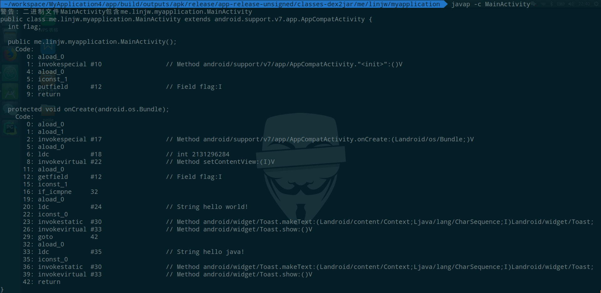 javap -c MainActivity