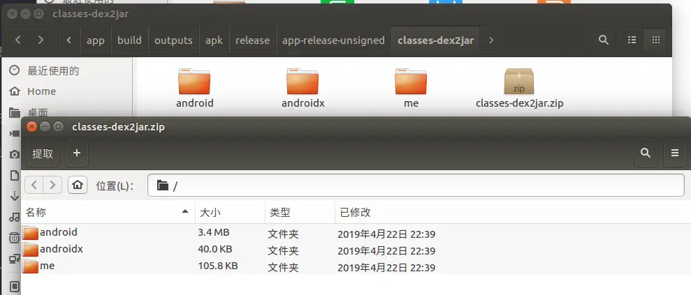 apk其实是一种zip压缩包,我们可以将它的后缀改成.zip,然后直接解压