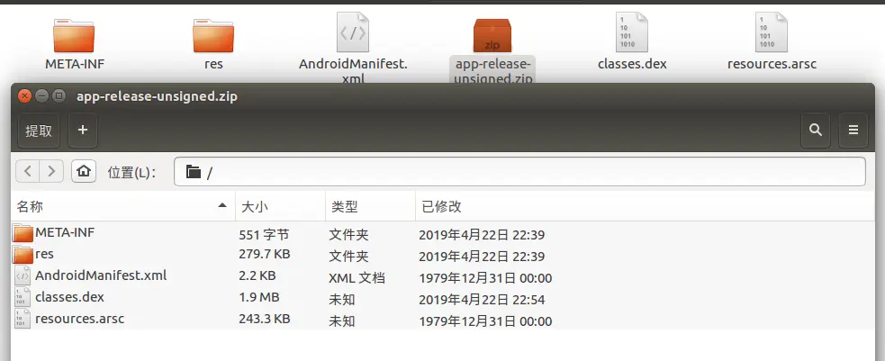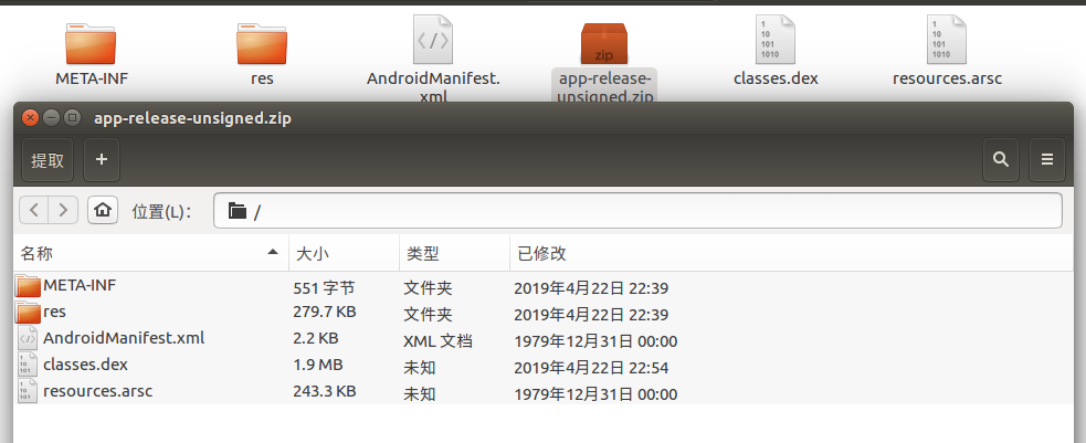 我们将解压出来的东西都放到app-release-unsigned目录里面: