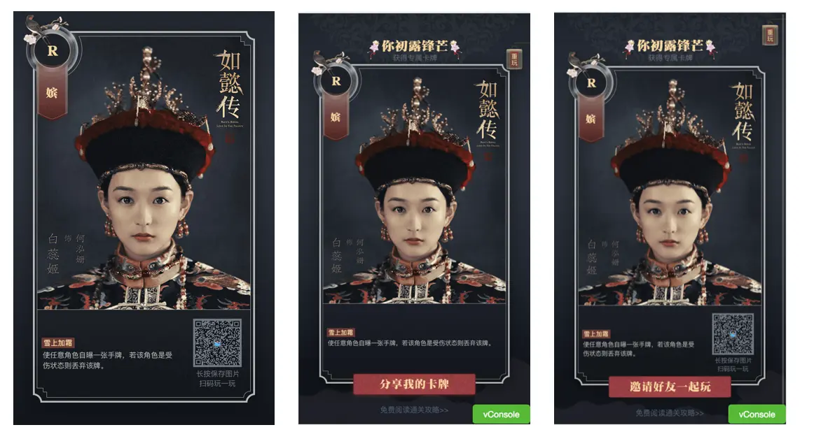 - 卡牌的二维码 使用客户端的方法添加。不要放在整个大的背景图片上,因为有些安卓手机分享到QQ会压缩处理图片。- 保证清晰度 大小是135*135。